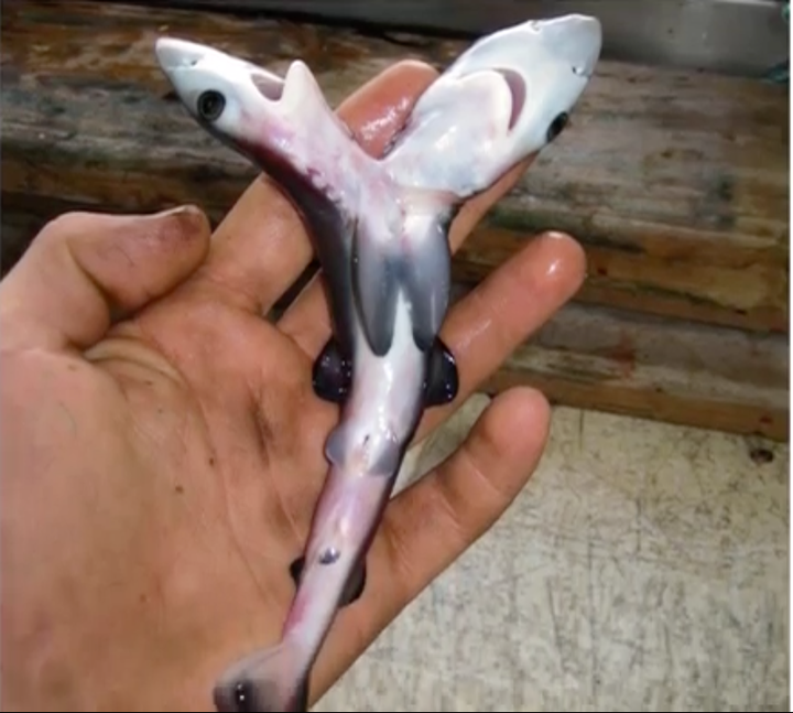 Galván-Magaña also reported seeing other mutated sharks like a one-eyed ‘cyclops’ shark caught off the coast of Mexico in 2011. This shark had just one functioning eye positioned at the front of its head.