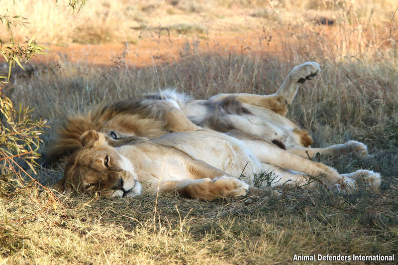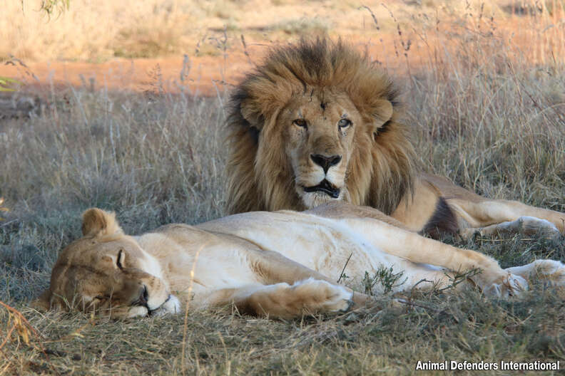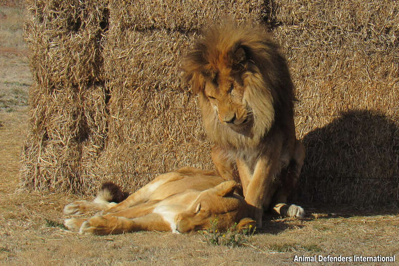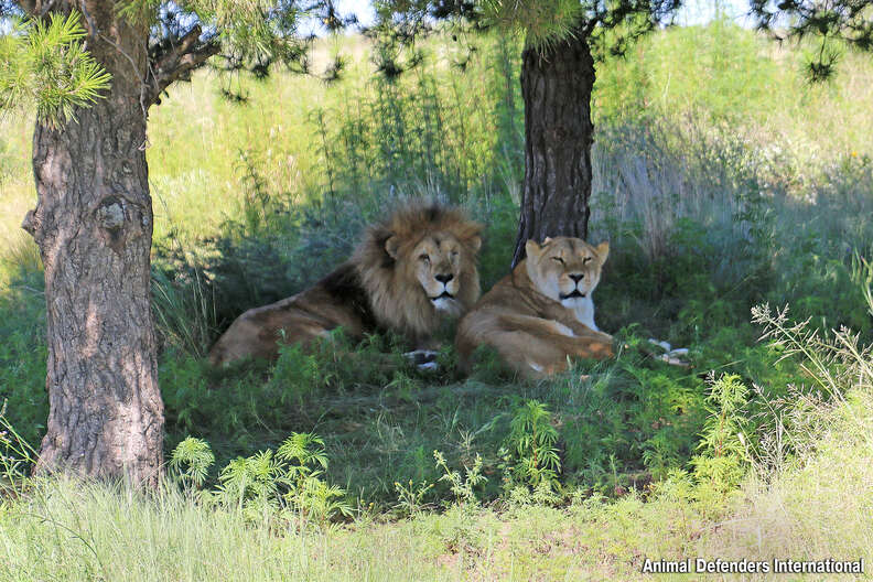 Leo and Muñeca have known each other for nearly their entire lives. The pair of lions and their children were rescued from a circus in Peru in 2014 by Animal Defenders International (ADI). They were briefly separated during their rescue, but other than that, they were rarely ever apart.