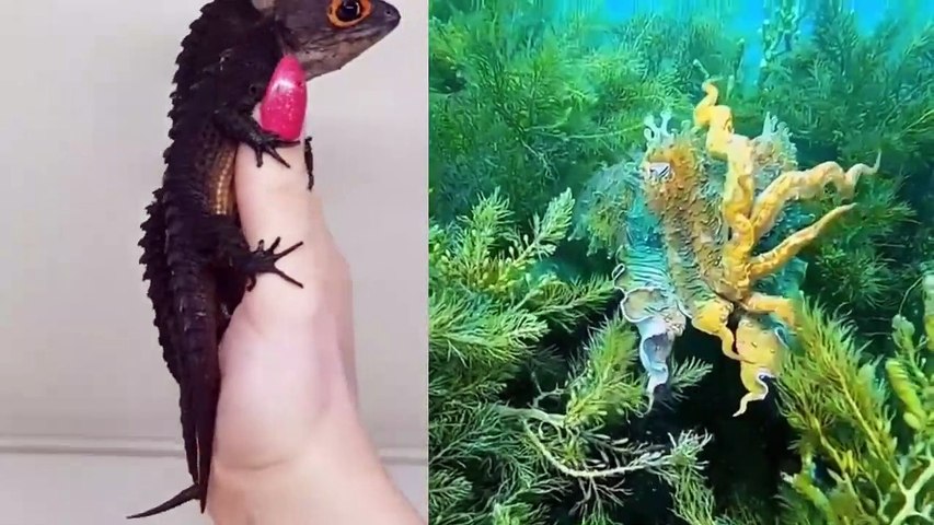 We’d taught not to judge people by appearances thankfully this doesn’t apply to fish if you see this fish do not question anything and just quietly swim away the sarcastic fringe shed is not only possessive about its territory but it also has a mouth full of needle-like teeth that can open and close like a bear trap they’re just that witch that lives in the woods and hates everyone let them and their silly burrows be male ribbon eel with so much trash down in the ocean you can easily confuse this creature for a piece of ribbon or colorful cloth the ribbon eels start their life as bright yellow eels and then comes the phase where they turn blue and yellow at this point in life they’re actually male when they turn back to yellow they become female the color of their skin is corresponding to their sex how cool is that harlequin toad the harlequin toad has beautifully striped bodies that you might think is good enough to attract a female frog but it’s not in fact these frogs completely forego food during mating season for a special love diet that makes them lose up to 30 percent of their body weight even after that they have to wave in the water to get their attention cone head mantis the majestic code head mantis has enough charm to captivate anyone’s eye that is if you can find them their bodies already blend so well with the plant yet they even move like leaves to blend in even more african giant millipede millipedes and other insects with more legs than we could imagine are creepy enough and then there’s the african giant millipede that looks like it’s more a snake than a millipede no one in their right minds will go near them and even if you do they’ll secrete a liquid that can make your skin itchy like crazy hammerhead worm the hammerhead worm is the most hardcore worm you can possibly imagine most worms just wriggle around and don’t cause much armor but they actually like to prey on their own kind earthworms sometimes they even eat slugs insect larvae and other hammerhead worms too it pushes the prey against the surface and enveloped it into a slimy secretion and drinks it up hercules beetle the hercules beetles might not be heroic but with these swords on their head they sure look like it the best part is the beetles don’t bite don’t produce any smelly odors and are pretty easy to take care of so if you want an intimidating pet that’s not a pit bull this might be your best bet honduran white bats the honduran white bats are the exact opposite the regular scary bats the starters they’re just so cute and they love getting pets from humans sometimes they will curl up in big leaves and make the tent into their home that’s not all they all snuggle together and then sleep how adorable albino seal.
